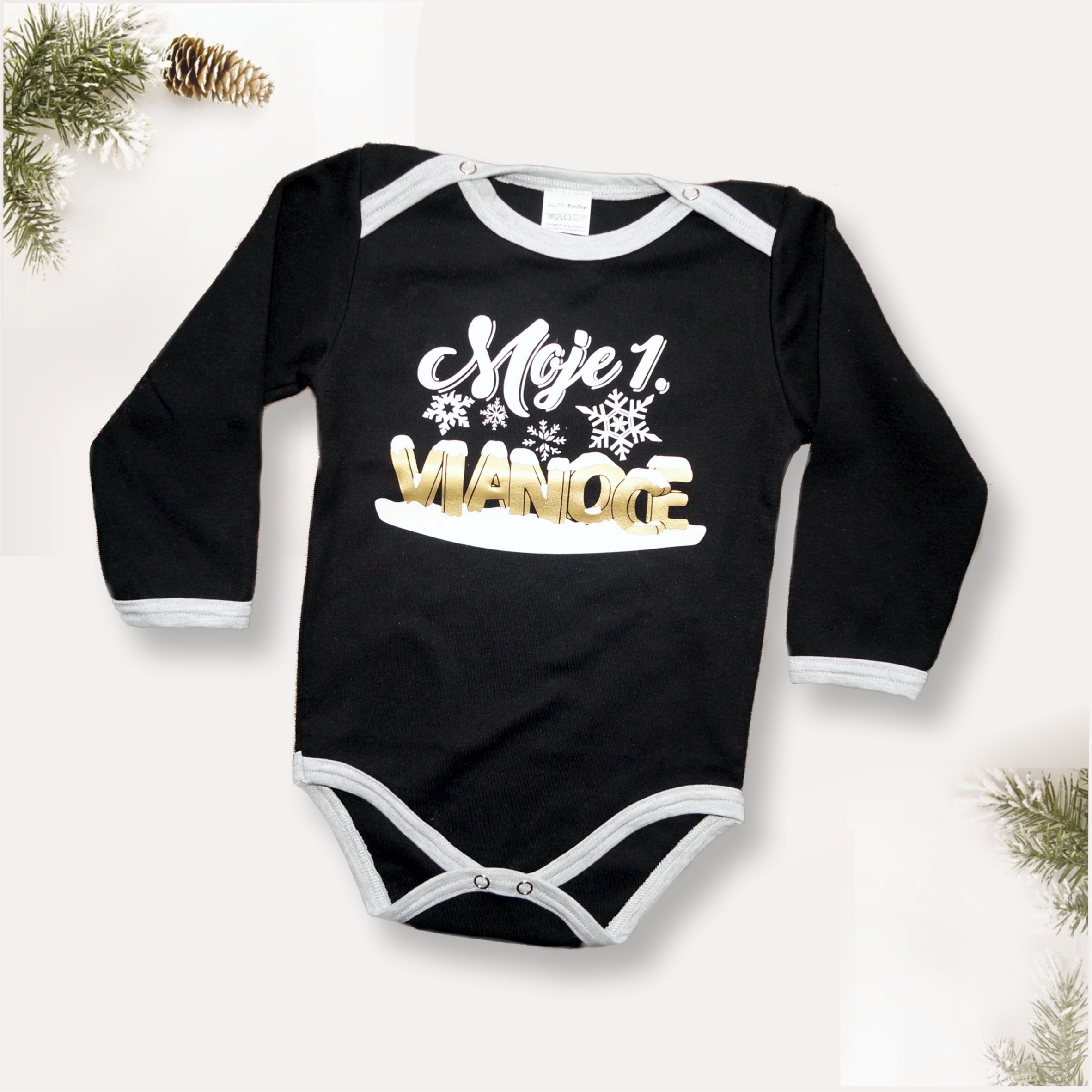 Originálne detské body s dlhým rukávom, veľmi príjemné na dotyk. Kojenecké body sú vyrobené na Slovensku zo 100 % bavlny (210-220 g/m2}. Body s nápisom majú zapínanie na cvoky na ramienku bábätka a medzi nožičkami. Veľkosť 50 – 98.